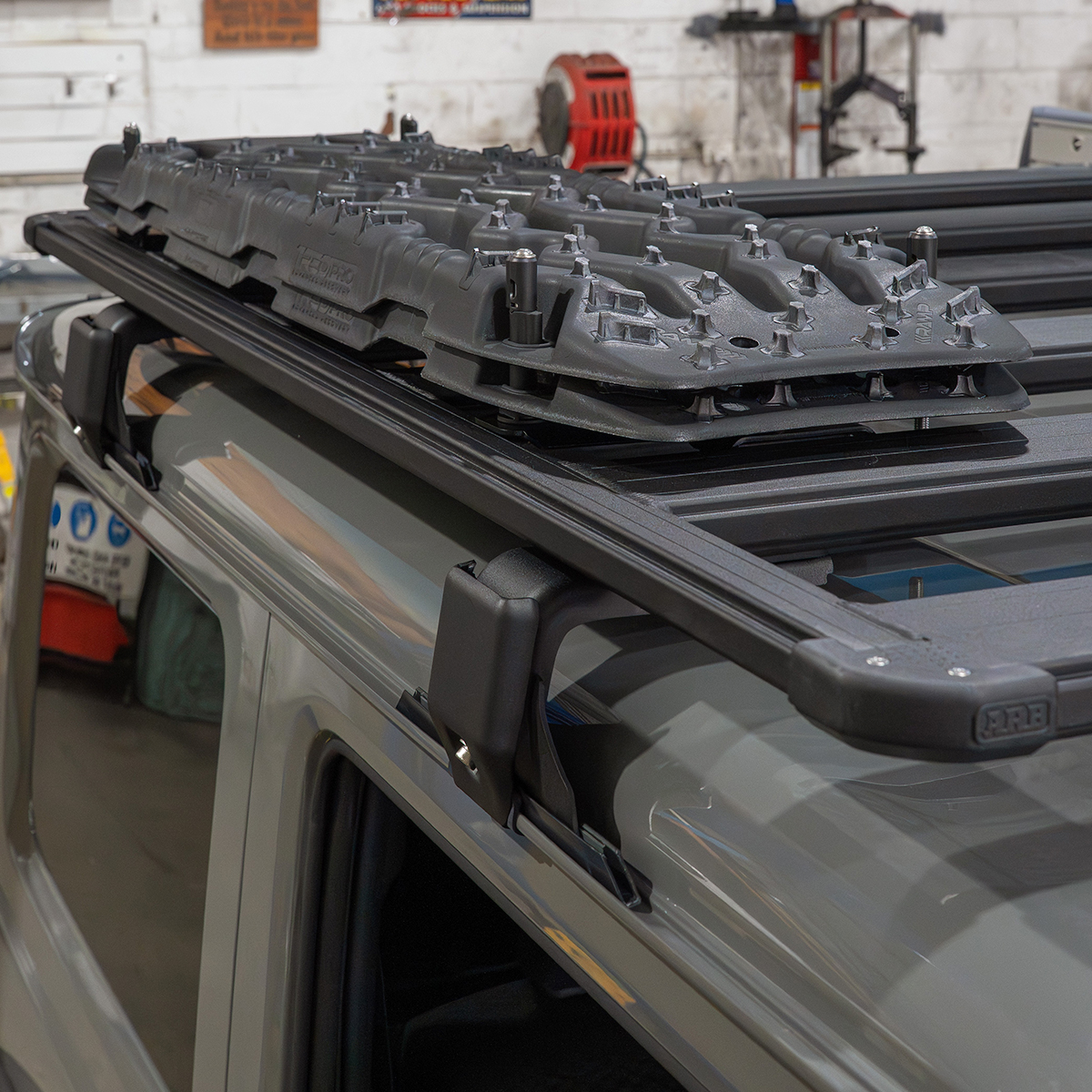 TLR Products Heavy-Duty TRED and Maxtrax Recovery Board Mount to suit North-South Orientation on the ARB Base Rack. -