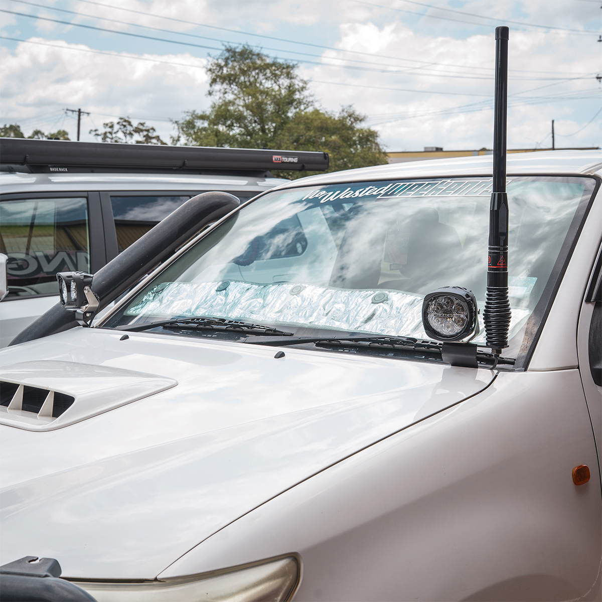 TLR Products Dual Aerial and Ditch Light Bracket to suit the Right-Hand Side Bonnet Hinge of a Toyota Hilux N70 Series.