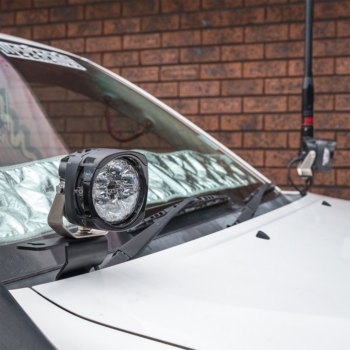 TLR Products Dual Aerial and Ditch Light Bracket to suit the Left-Hand Side Bonnet Hinge of a Toyota Hilux N70 Series. -